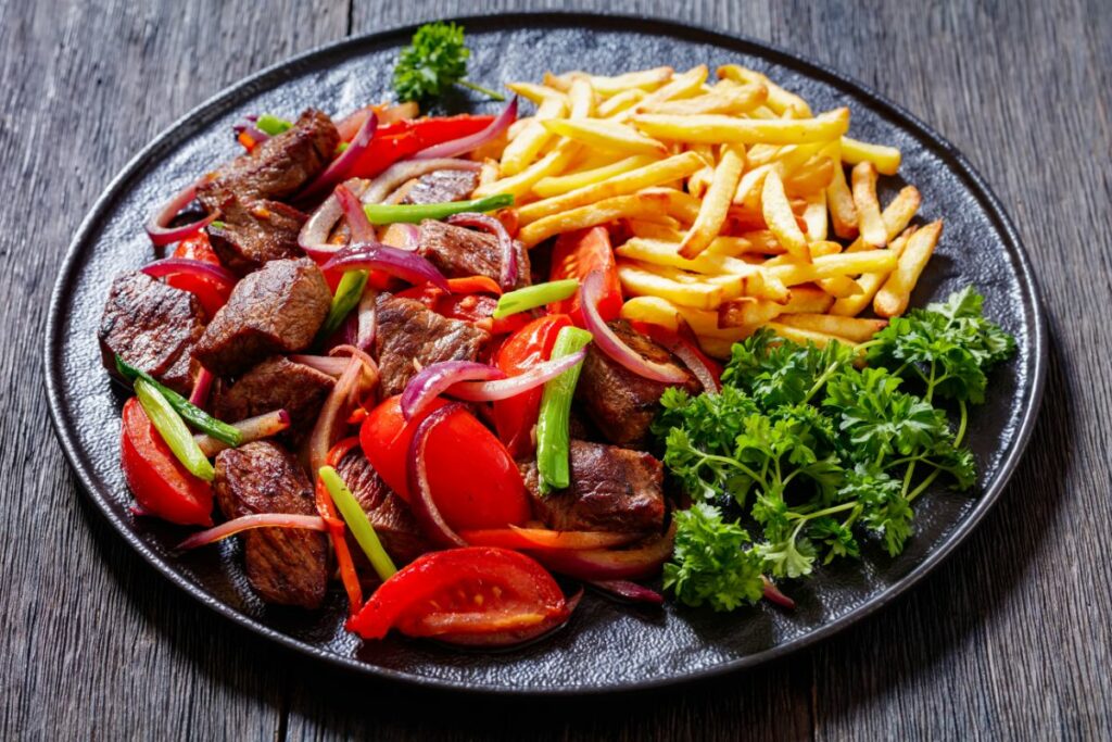 - Lomo Saltado: Um prato de carne salteada com vegetais, servido com arroz e batatas fritas, que combina influências peruanas e chinesas.