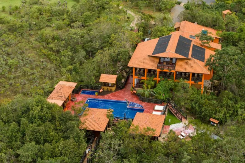 Sobretudo o Vila Cerrado, situada em Alto Paraíso de Goiás, é um refúgio de luxo que harmoniza conforto, sustentabilidade e imersão na natureza do Cerrado brasileiro. Composta por casas conceito de 70m², como os charmosos chalés Baru e Pequi, cada unidade oferece cozinha gourmet, deck com vista para o jardim e redário, proporcionando uma experiência acolhedora e integrativa com o ambiente natural. A arquitetura e decoração são inspiradas na cultura local, com nomes que remetem a árvores e frutos da região, como Copaíba, Jatobá e Buriti. Os hóspedes desfrutam de comodidades como piscina ao ar livre, spa com massagens terapêuticas, banheira de hidromassagem e café da manhã regional servido no Café Sensus.