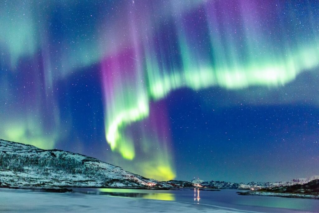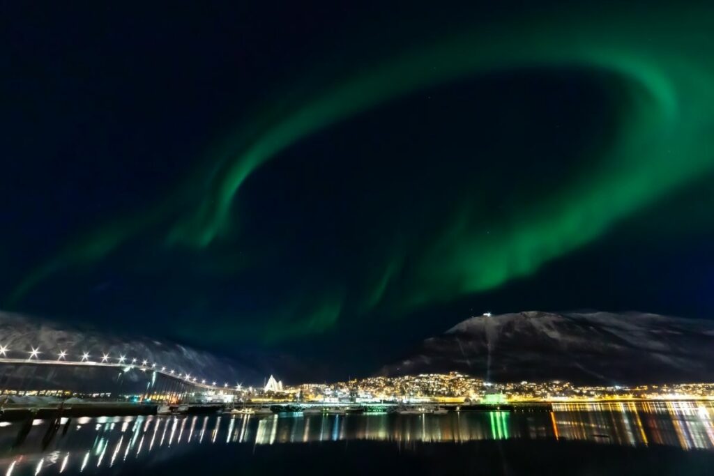 Tromsø é, sem dúvida, um dos destinos mais populares para observar a aurora boreal. Localizada ao norte do Círculo Polar Ártico, esta cidade norueguesa oferece uma excelente infraestrutura para turistas que buscam experiências únicas. Não só a cidade é encantadora, mas suas montanhas cobertas de neve e seu fiorde